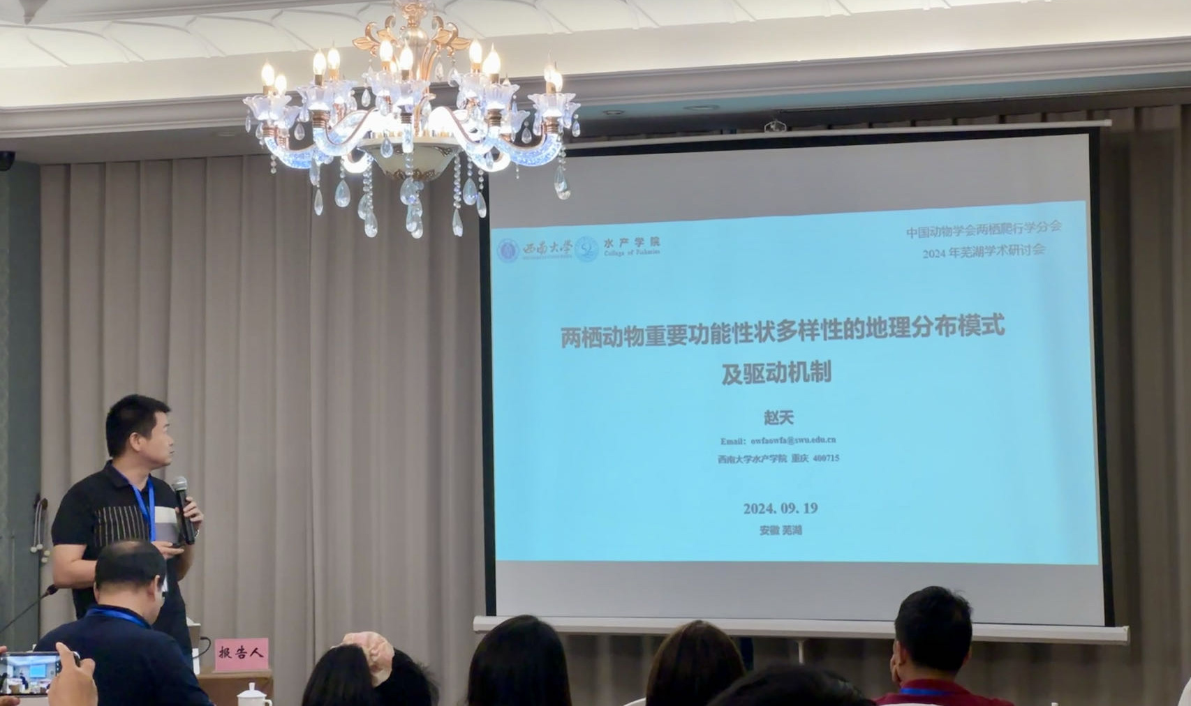 2024年9月18日至21日,由中国动物学会两栖爬行学分会主办,安徽师范老员工命科学公司和生态与环境科学公司等单位承办的中国动物学会两栖爬行学分会2024年学术研讨会在安徽省芜湖市召开。大会特别邀请到中国科公司昆明动物研究所施鹏研究员、中国科公司水生生物研究所何舜平研究员、辽宁师范大学李庆伟教授、中国科公司成都生物研究所李家堂研究员、安徽师范大学张方教授和中山大学马亮研究员分别做大会特邀报告,并分别围绕“两栖爬行动物系统分类与多样性”、“两栖爬行动物进化与适应”、“两栖爬行动物生理与生态”和“两栖爬行动物行为与保护”四个专题展开深入研讨。