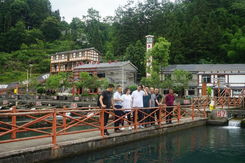 为推进产学研的深度融合,助力服务乡村振兴,6月15日,水产公司党委书记朱汉春一行赴重庆彭水苗族土家族自治县碧水清泉渔业有限公司进行了关于鲟鱼流水健康规模化养殖的实地调研,同行人员有人民日报《民生周刊》杂志社杨丽萍主任,彭水县经济信息委陈坤副主任、陈洪波科长以及公司党委副书记、纪委书记穆奎,朱成科副教授和解琦老师。