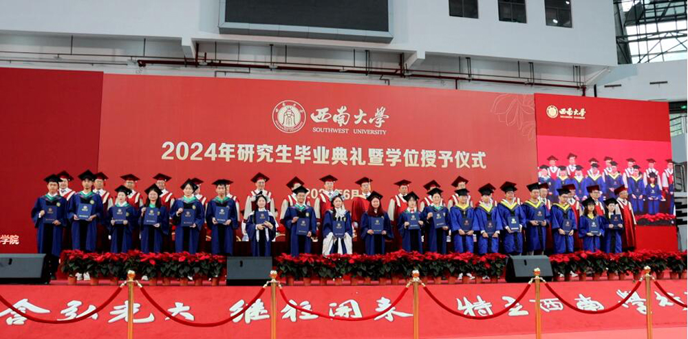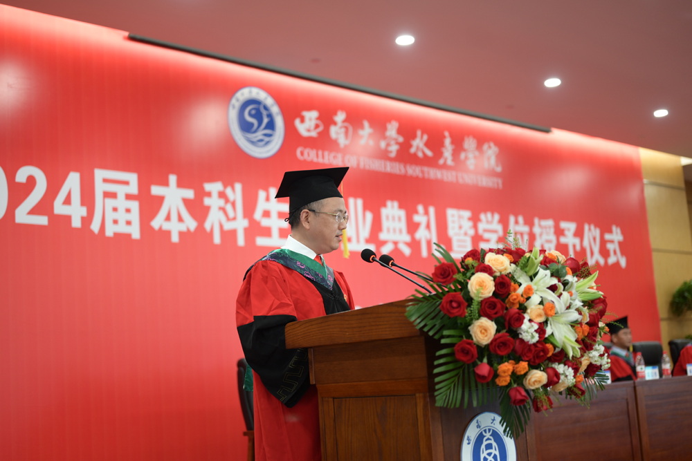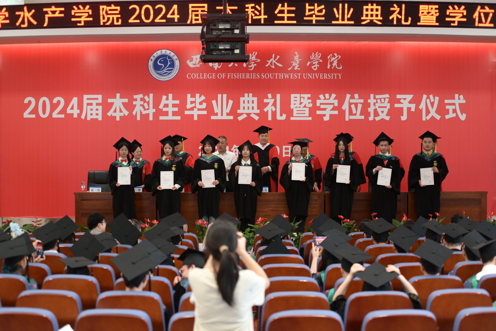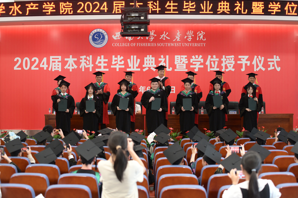 全体师生齐声合唱《必赢76net线路校歌》。“缙云苍苍,嘉陵泱泱,山高水长,养育栋梁”,在激昂的旋律中,必赢76net线路官网2024届本科生毕业典礼暨学位授予仪式圆满结束。承鸿鹄之志,踏追梦之途。毕业生们将带着“员工”的新身份奔赴五湖四海,投入到民族复兴的伟大征程,向幸福和成功的未来起航,拥抱属于西大水产人的灿烂星辰。