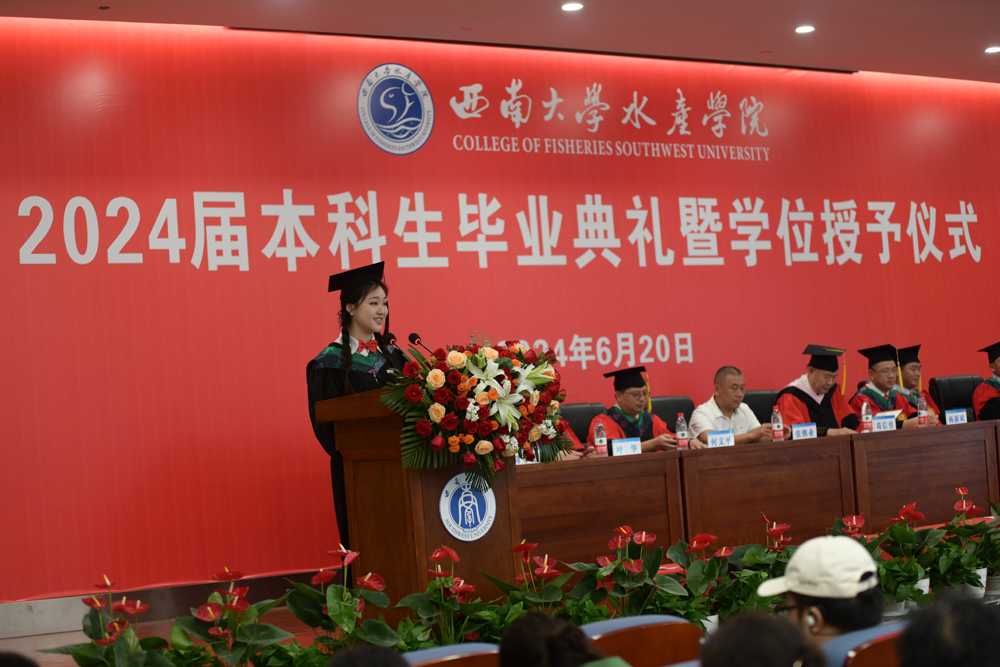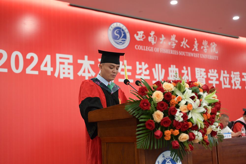 随后,全体毕业生起立,庄严宣誓“誓不负师长教诲,母校培养;誓不负国家期许,社会期望……”,铿锵誓言展示水产学子不忘初心、勇敢前行和为建设美丽中国奉献自己的青春和热血的信心、决心和力量。