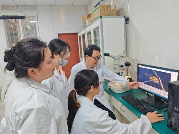 图4. 专家在校内鳜鱼苗种繁育设施现场