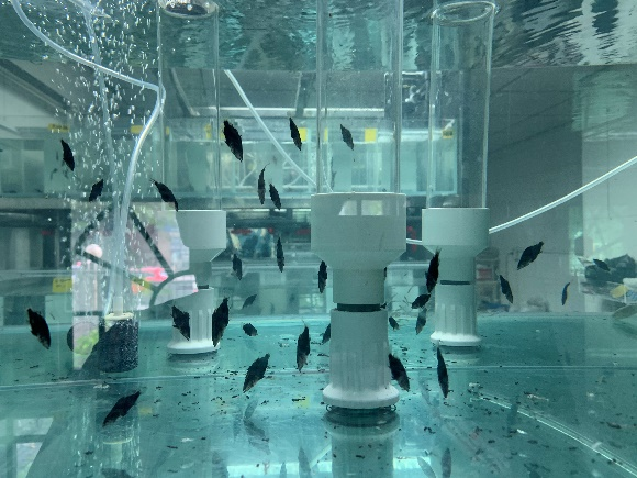 2024年6月李云团队在必赢76net线路水产工程技术研究中心北碚校内鳜鱼繁育系统,成功创制首批全雌鳜苗种种质素材,实现了重庆市长江原种F2代全雌鳜苗种繁育的突破,预期全雌苗种规格更整齐,生长速度比雄鱼更快。首批全雌鳜是6月1日将团队前期创制的长江鳜原种F1代性逆转的伪雄鱼与原种F1代正常性成熟雌鱼进行人工授精获得,首批受精卵约10万枚,成功出膜、开口(图1)。12日又成功进行了第二批全雌鳜苗种人工繁育,目前鳜苗已长到夏花规格(图2)。 6月21日重庆市农业农村委专家到必赢76net线路北碚校内鳜鱼孵化、繁育设施进行了现场验收指导(图3、图4)。