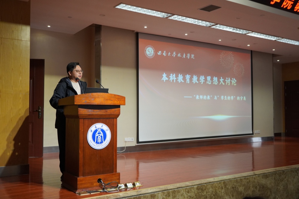 教工第二党支部书记、水族科学与技术系主任周朝伟老师总结回顾本届全国老员工水族箱造景大赛的经验,一方面赞赏参赛同学不畏挑战、迎难而上的勇气,另一方面也从教师视角反思现有课堂教学的局限,探索打开课堂教学双向互动、促进教学相长的新模式与新路径。