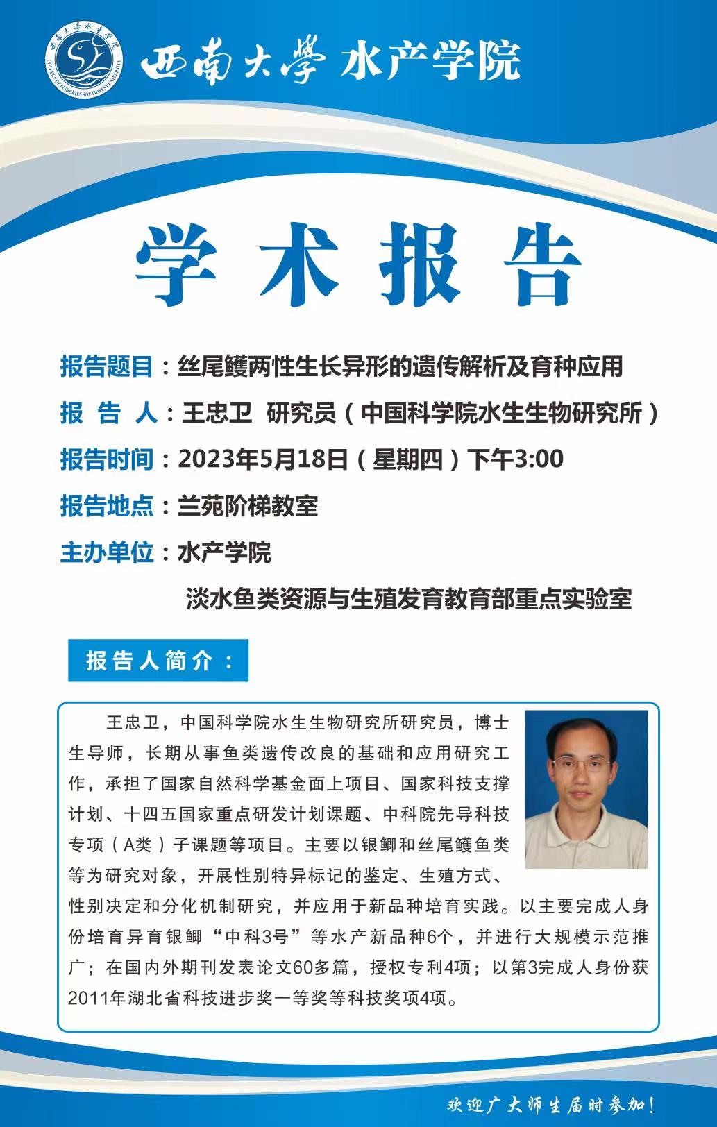 【学术讲坛】丝尾鱯两性生长异形的遗传解析及育种作用